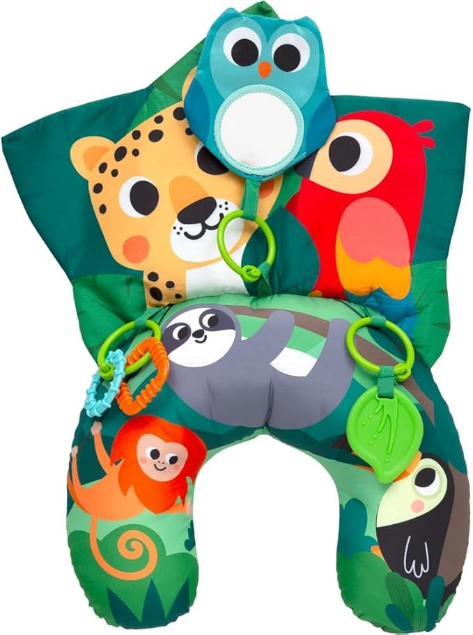 A Almofada de Atividades Amazônia é ideal para os primeiros momentos do bebê, oferecendo conforto e estímulo durante o brincar de bruços. Seu design ergonômico auxilia no fortalecimento dos músculos e incentiva a posição ideal para engatinhar. Com mordedor, texturas, sons de amassadinho e espelhinho, todos removíveis e coloridos, proporciona experiências sensoriais que estimulam visão, tato e audição, além de entreter o pequeno de forma segura e divertida.