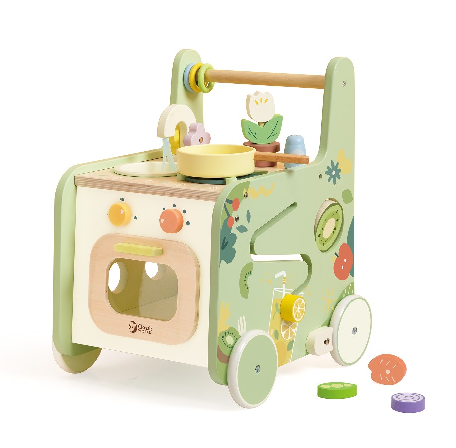 'Classic World, CWT, Toyoca, 10521, 6927049015212, andador de madeira infantil, brinquedo de cozinha bebê, brinquedo educativo primeiros passos, brinquedo 2 em 1 andador e cozinha, brinquedo coordenação motora e equilíbrio'