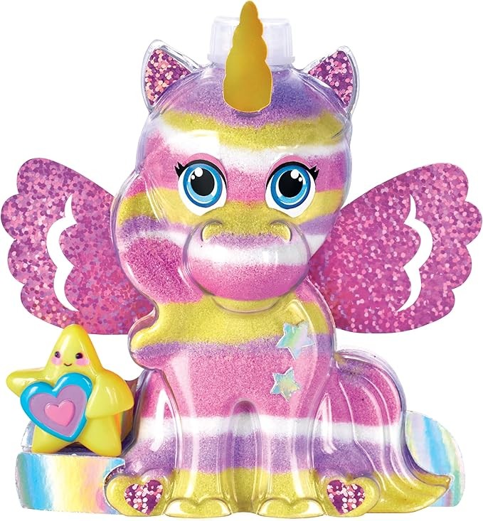 Um kit mágico para criar, decorar e brincar com seu próprio unicórnio feito de areia colorida e brilhante. Com asas encantadas, adesivos cintilantes e até uma miniestrela mágica para fazer um desejo, a atividade estimula a imaginação e proporciona momentos criativos únicos. Perfeito como presente criativo para aniversários, Natal ou pequenas surpresas especiais.