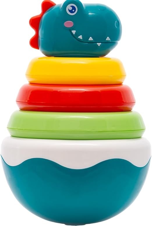 O Dino Teimoso é um brinquedo divertido e educativo que estimula os sentidos e a coordenação motora dos pequenos. Com base arredondada, ele balança sem cair, despertando a curiosidade e o riso. A criança pode montar e desmontar as argolas coloridas, que também produzem som de chocalho, tornando a brincadeira ainda mais envolvente.