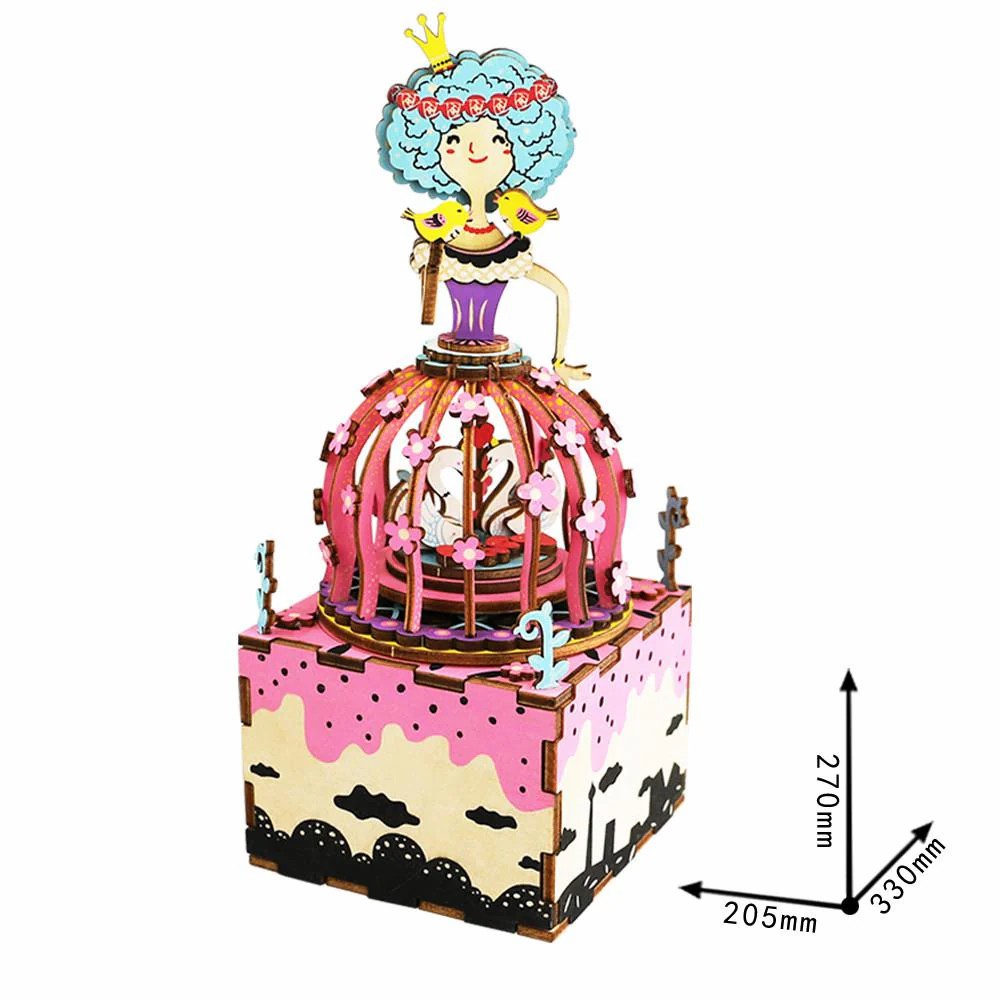 Uma caixa de música para montar e se encantar! Inspirada no universo mágico das princesas, este modelo traz uma figura delicada em meio a um cenário encantador, que gira suavemente ao som da melodia. O kit é composto por peças em madeira cortadas a laser com encaixes precisos e acabamento refinado. Ideal para estimular criatividade, coordenação motora e concentração, além de ser uma peça decorativa única e cheia de charme.