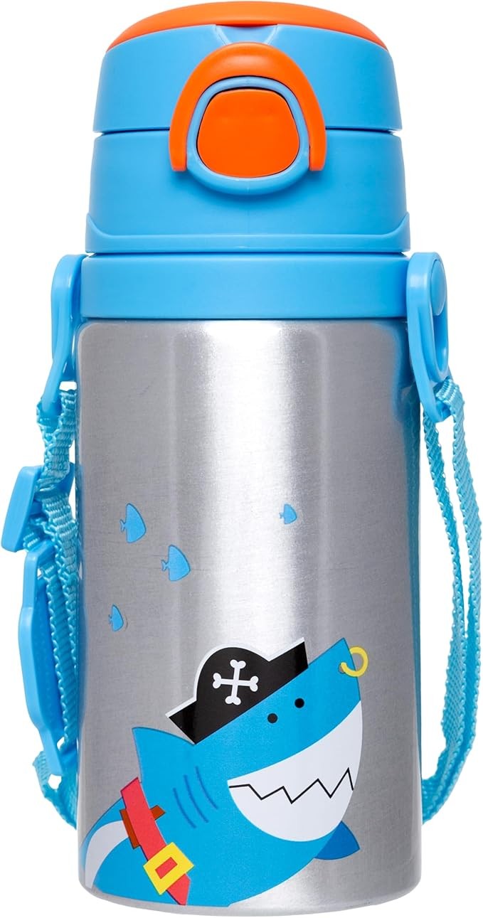 A Garrafinha Aventuras Pirata é ideal para acompanhar os pequenos em passeios, escola ou viagens. Produzida em alumínio, é leve, resistente e higiênica. Possui canudo interno, tampa com trava de segurança e cordinha antiqueda, garantindo praticidade e segurança no uso diário.Com estampa temática de pirata e cores vibrantes, estimula a imaginação e torna a hidratação mais divertida.