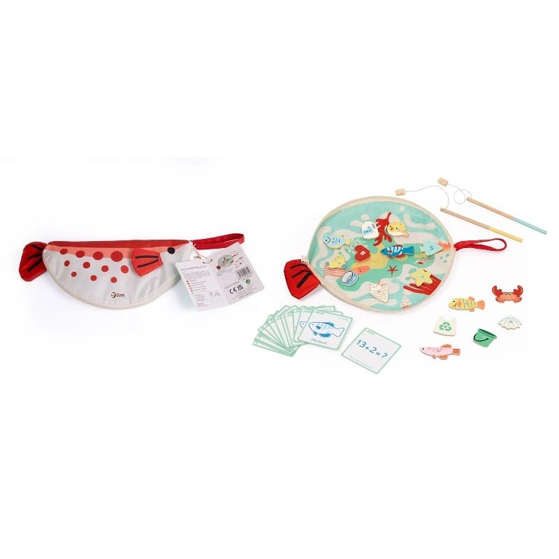 O Jogo de Pesca Ecológico é uma atividade divertida e educativa que combina coordenação motora, aprendizado e consciência ambiental. Com varas magnéticas, peixinhos de madeira, peças de reciclagem e cartões educativos, as crianças podem brincar de pescar, aprender números e cores, além de identificar os objetos que não pertencem ao mar. Tudo isso em uma prática bolsa em formato de peixe, perfeita para levar em viagens ou passeios.