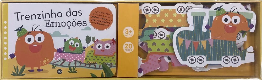 O Trenzinho das Emoções proporciona inúmeras possibilidades de conversas e brincadeiras, além de ajudar a criança a desenvolver a empatia e a identificar suas emoções e lidar com elas. Reconhecer as próprias emoções e saber como reagir a elas é essencial em muitos aspectos da vida, tanto para crianças quanto para adultos. • Um livro que ensina sobre as emoções • Fotos de crianças demonstrando emoções diversas • Um quebra-cabeça de 20 peças • Um jogo da memória de 22 peças