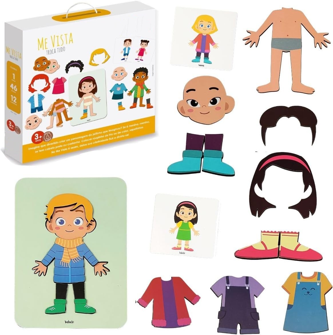 Um jogo criativo e divertido que permite montar personagens do jeitinho que a imaginação mandar. A criança escolhe cabelo, roupas, acessórios e combinações variadas, criando figuras únicas enquanto desenvolve coordenação motora, percepção visual e criatividade. Produzido em madeira reflorestada, é resistente, seguro e perfeito para brincar em casa ou na escola.