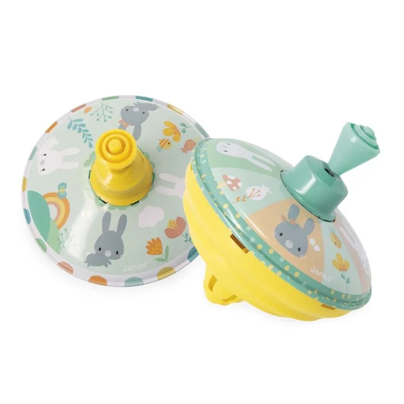Brinquedo clássico que proporciona diversão e aprendizado. Possui corpo em metal e alça em plástico para facilitar o manuseio. Ao pressionar o botão superior, o pião gira exibindo figuras de animais, ajudando a criança a desenvolver habilidades motoras e percepção espacial.
