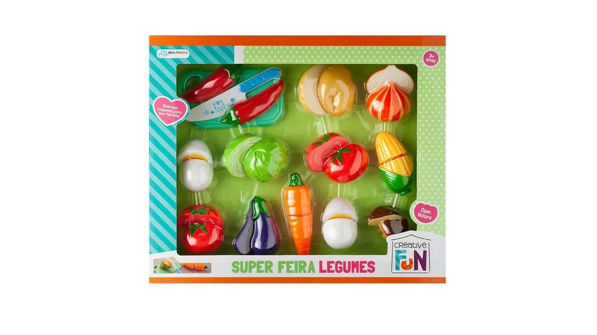 A Super Feira de Legumes Creative Fun é perfeita para estimular a imaginação e o aprendizado das crianças na primeira infância. Com 12 opções de legumes e diversos acessórios, proporciona a clássica brincadeira do “Crec-Crec” de montar e desmontar, incentivando a coordenação motora, a criatividade e o faz de conta. Produzida em material resistente, é ideal para brincadeiras interativas e seguras.