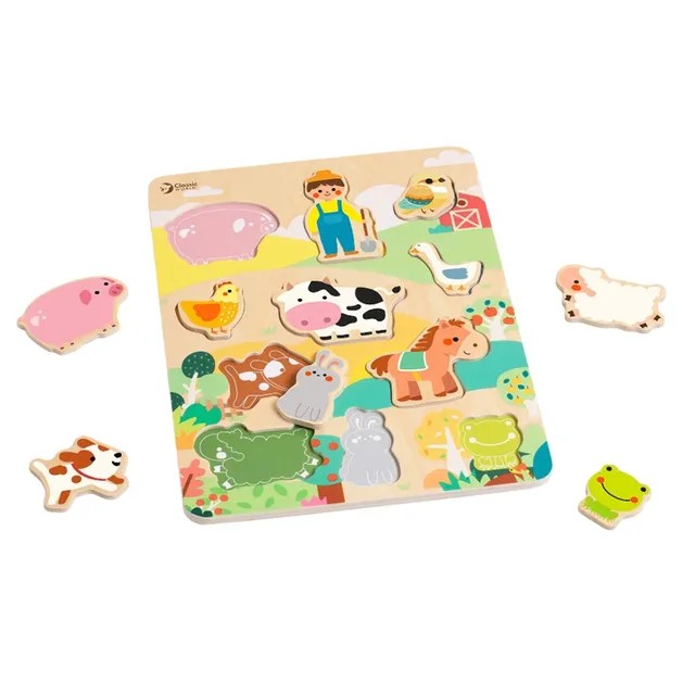 O Tabuleiro de Encaixe Fazenda é um brinquedo encantador que estimula a observação, a coordenação motora e a imaginação dos pequenos. Com peças coloridas em madeira representando animais e personagens da fazenda, como o granjeiro, cachorro, galinha e porco, a criança pode encaixar cada figura em seu espaço no tabuleiro, desenvolvendo habilidades cognitivas e motoras de forma divertida.