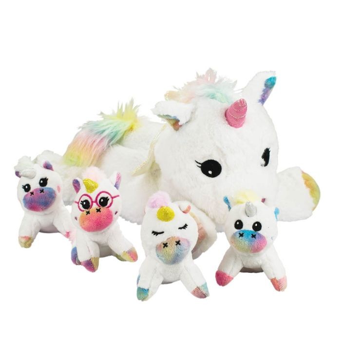 • Pelúcia de unicórnio mãe com 4 filhotes escondidos